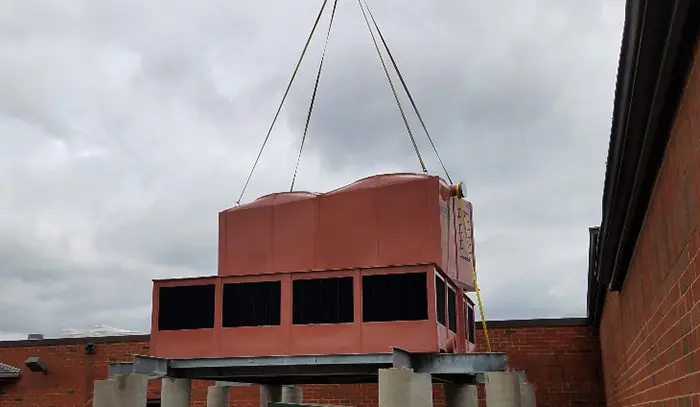 ¡Increíble remplazo! Esta Torre de Enfriamiento modelo RT-1616415-B fue instalada en la escuela Mason Middle School en Ohio. El arquitecto encargado del proyecto eligió este color para combinarlo con el color de la pared de ladrillo.