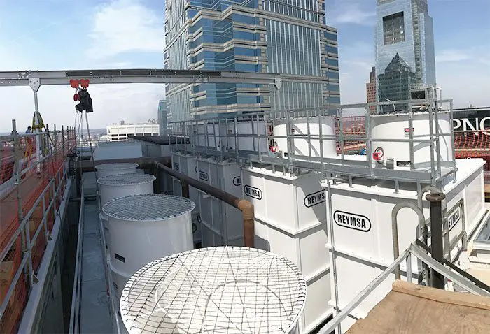El edificio Two Liberty, uno de los más altos en la costa este de Estados Unidos (Filadelfia), ha sido actualizado con 12 Torres de Enfriamiento REYMSA 100% Fibra de Vidrio, ¡haciendo la mejor elección! Las Torres de Enfriamiento REYMSA proporcionarán más de 30 años de óptimo servicio, libre de fugas y corrosión gracias a su cisterna de una sola pieza y su protección UV.